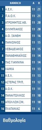 Ισόπαλο το αθηναϊκό ντέρμπι μεταξύ του Παναθηναϊκού και της Α.Ε.Κ. με γκολ του Λιβάγια στις καθυστερήσεις του παιχνιδιού κάτι που κρατά την Α.Ε.Κ. στην κορυφή μαζί με τον Π.Α.Ο.Κ.