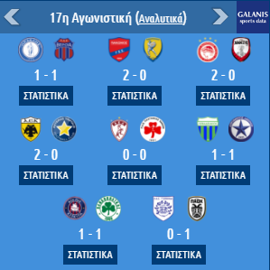 Δείτε αναλυτικά τα αποτελέσματα καθώς και τη βαθμολογία ενώ λίγο παρακάτω υπάρχει και το πρόγραμμα της επόμενης αγωνιστικής.