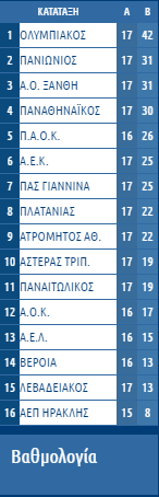 Ολοκληρώθηκε πριν από λίγα λεπτά η 17η αγωνιστική του πρωταθλήματος της Super League με το μεγάλο διπλό του Π.Α.Ο.Κ. στην έδρας του ΠΑΣ Γιάννινα.