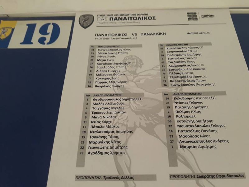 Ισόπαλος χωρίς σκορ έληξε ο φιλικός αγώνας ανάμεσα στον Παναιτωλικό και την Παναχαϊκή στο Αγρίνιο. Ο Τραϊανός Δέλλας έδωσε χρόνο συμμετοχής σε αρκετούς παίκτες, σε μια αναμέτρηση που είχε ικανοποιητικό ρυθμό αλλά όχι πολλές ευκαιρίες για γκολ.
