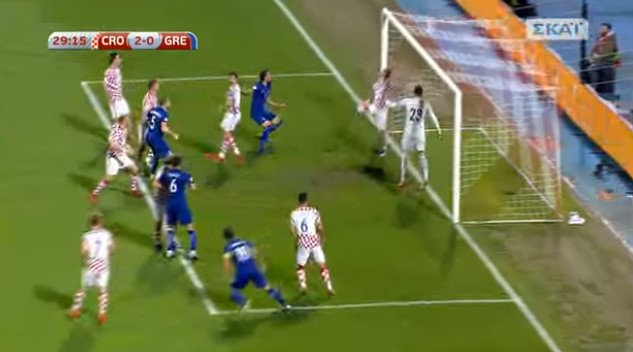 Ο Μόντριτς από την άσπρη βούλα άνοιξε το σκορ για τους γηπεδούχους, μετά από παράβαση στην οποία είχε υποπέσει ο Καρνέζης στον Κάλινιτς στο 13’ (σσ. κάκιστο κοντρόλ αρχικά και στη συνέχεια ανατροπή του αντιπάλου από τον Έλληνα πορτιέρε), για να έρθει ο Κάλινιτς έξι λεπτά μετά να δώσει αέρα δύο τερμάτων στους Κροάτες.