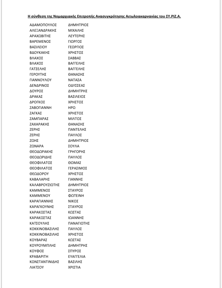 ΣΥ.ΡΙΖ.Α. Αιτ/νίας: Σύνθεση της νέας Νομαρχιακής Επιτροπής Ανασυγκρότησης