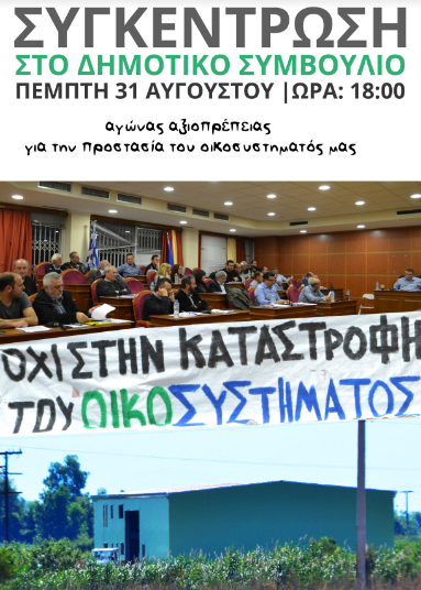 Την Πέμπτη 31 Αυγούστου θα βρεθούμε στο Δημοτικό Συμβούλιο (Ώρα: 18:00, αίθουσα συνεδριάσεων της Περιφ. Ενότητας Αιτωλ/νίας) ώστε να συνεχίσουμε να πιέζουμε προς όλες τις κατευθύνσεις για το πολύ σημαντικό ζήτημα της καύσης των βιορευστών.
