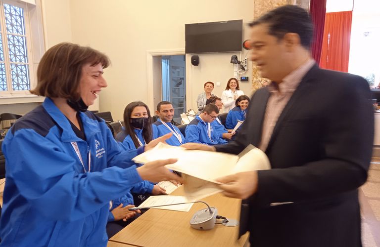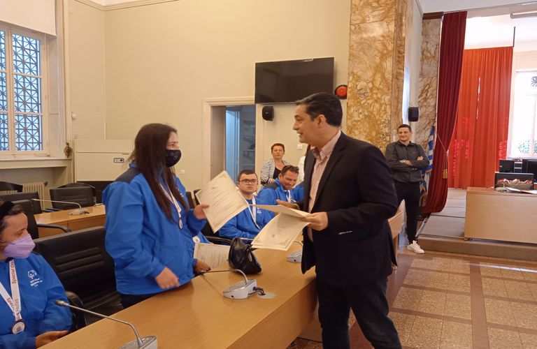 Την Αθλητική Ομάδα των εκπαιδευόμενων νέων του Εργαστηρίου «Παναγία Ελεούσα» που διακρίθηκε στους Αγώνες των Special Olympics Hellas «Λουτράκι 2022», υποδέχτηκε ο Δήμαρχος Αγρινίου στην αίθουσα Συνεδριάσεων του Δημοτικού Συμβουλίου.