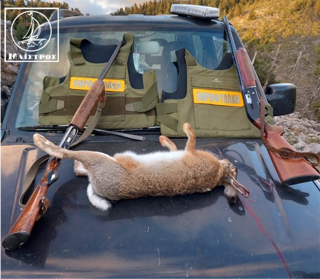 Ακολούθησε καταδίωξη όπου συνελήφθησαν και κατασχέθηκαν 2 κυνηγετικά όπλα καθώς και ένας λαγός τον οποίο είχαν θηρεύσει παράνομα την νύχτα.
