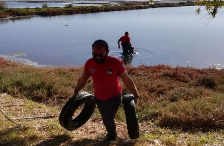 Η ανέλκυση και η απομάκρυνση ελαστικών από οχήματα που βρίσκονταν πετάμενα για πολλές δεκαετίες και μόλυναν τον υδροβιότοπο της πανέμορφης Λιμνοθάλασσας της Κλείσοβας.