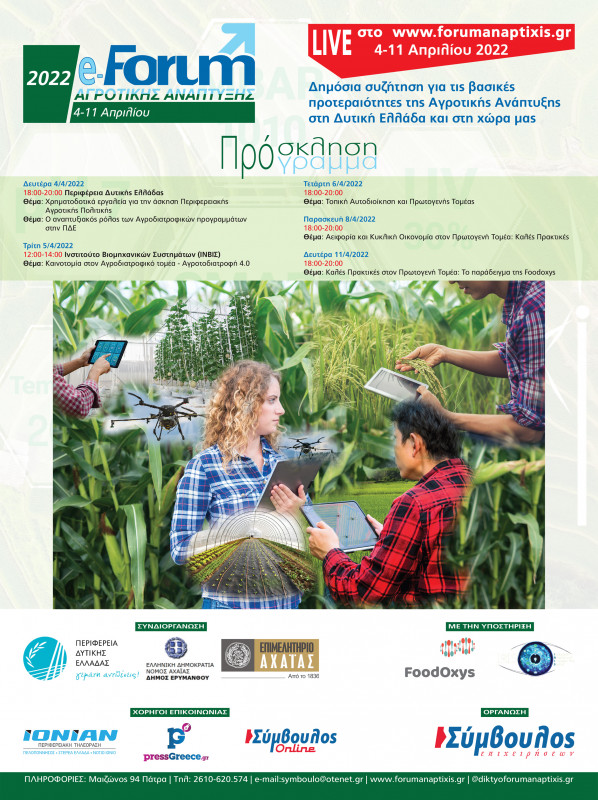 Το Αναλυτικό Πρόγραμμα των εκδηλώσεων του e–Forum Αγροτικής Ανάπτυξης 2022:
