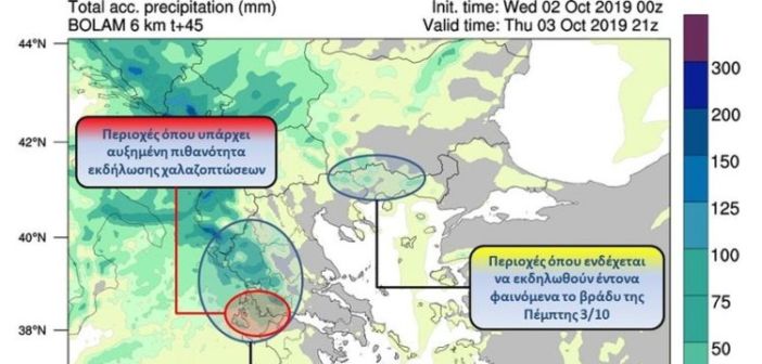 Όπως χαρακτηριστικά επισημαίνει το meteo «από τις νυκτερινές ώρες της Πέμπτης προς Παρασκευή νέο μέτωπο τοπικά ισχυρών βροχών και καταιγίδων θα «σαρώσει» τη χώρα από τα βορειοδυτικά, κατευθυνόμενο κατά τη διάρκεια της Παρασκευής προς τα νησιά του Ανατολικού Αιγαίου».