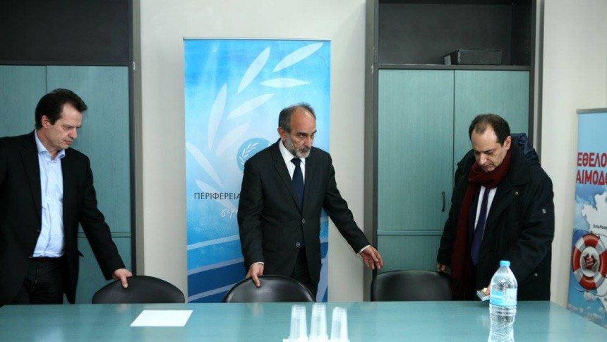 Σύσκεψη στην Περιφέρεια Δυτικής Ελλάδας παρουσία του Υπουργού Υποδομών και Μεταφορών, Χρήστου Σπίρτζη, του Γενικού Γραμματέα Υποδομών, Γιώργου Δέδε, του Διευθύντος Συμβούλου της ΕΡΓΟΣΕ, Θάνου Βούρδα, και του Διευθύνοντος Συμβούλου του ΟΣΕ, Κώστα Πετράκη.
