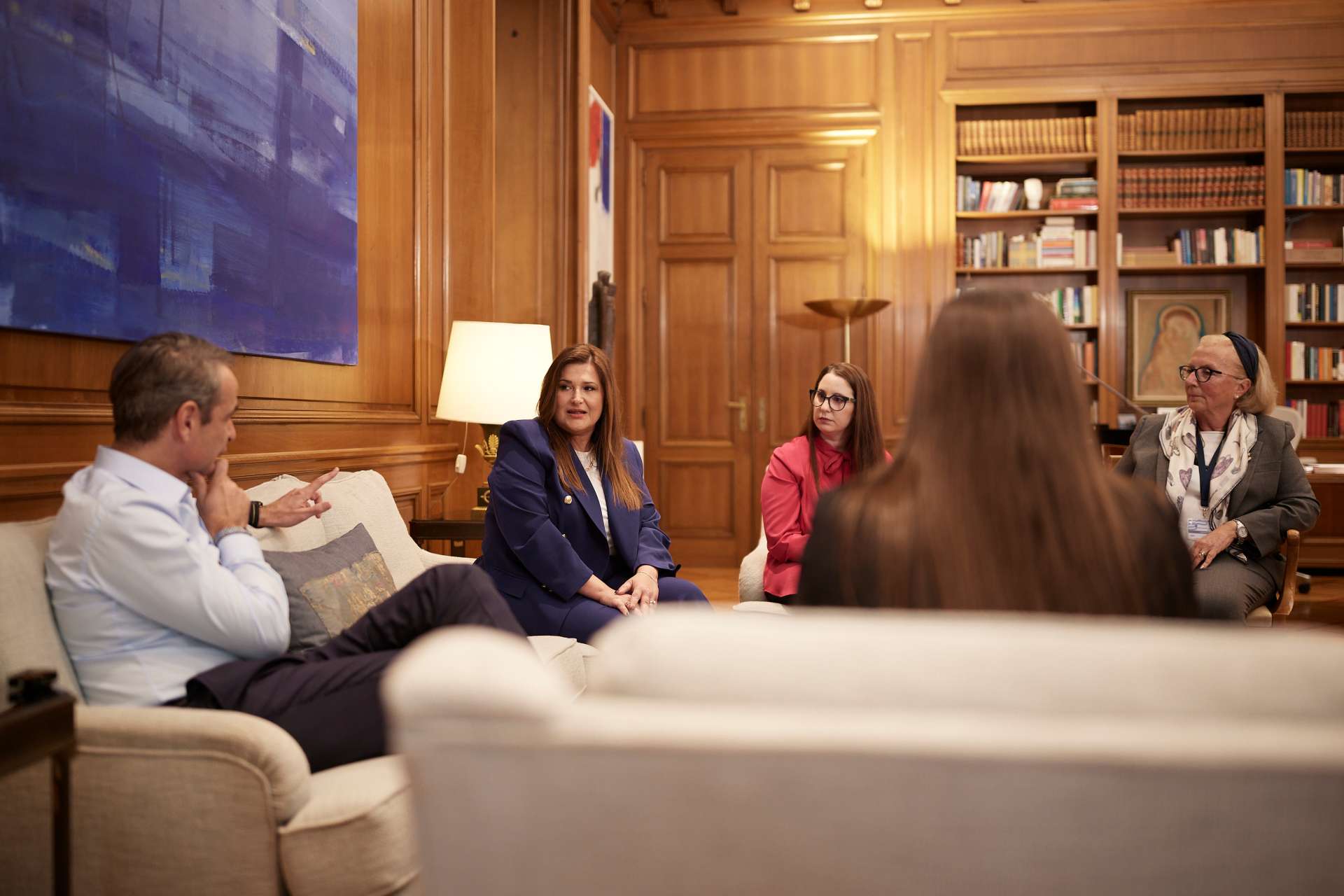 Με πέντε γυναίκες συναντήθηκε στο Μέγαρο Μαξίμου ο Πρωθυπουργός Κυριάκος Μητσοτάκης, με αφορμή την Παγκόσμια Ημέρα της Γυναίκας, και συζήτησε μαζί τους για τα θέματα που απασχολούν σήμερα τις γυναίκες όλων των ηλικιών.