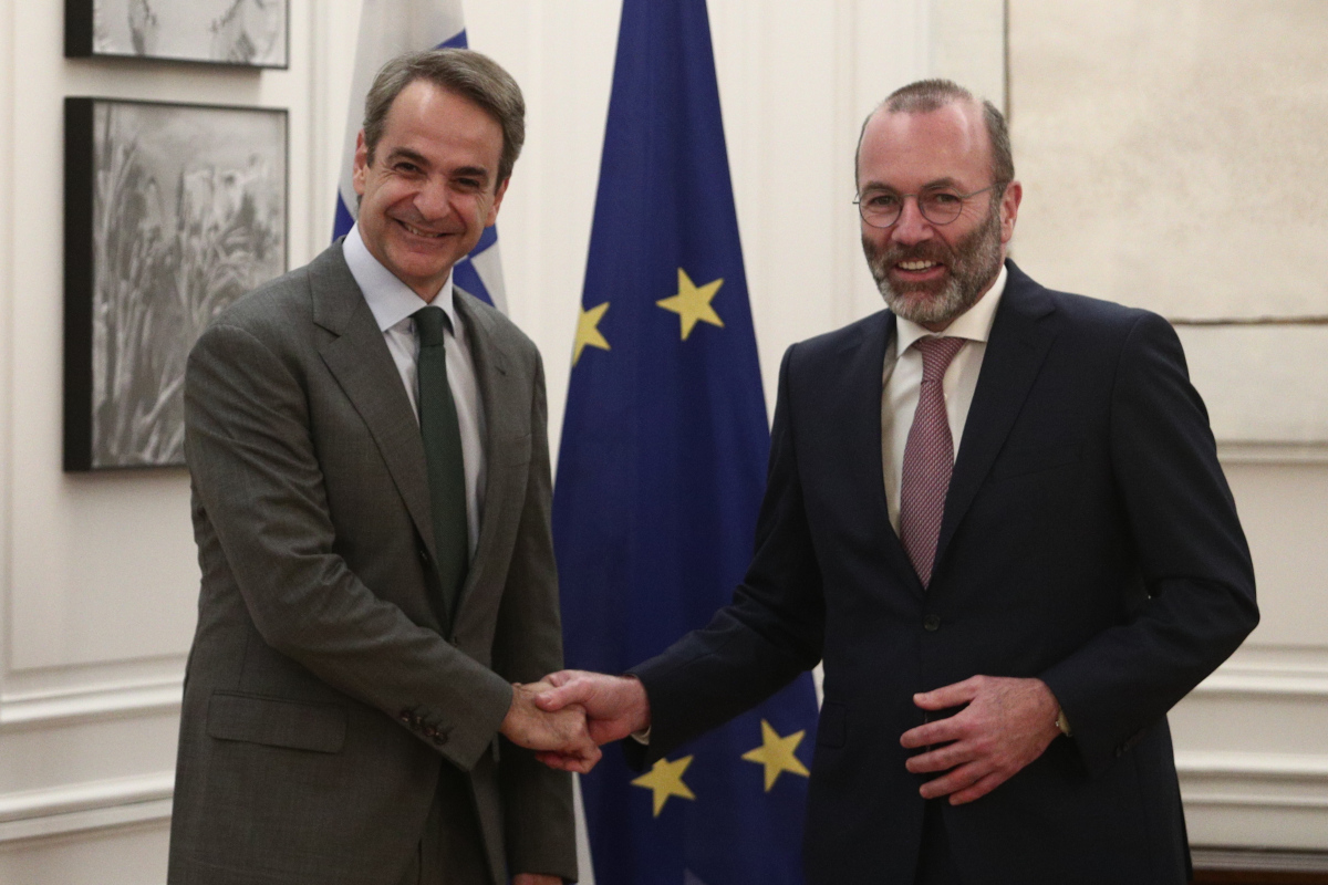 Ο πρωθυπουργός Κυριάκος Μητσοτάκης υποδέχεται αυτή την ώρα τον πρόεδρο του Ευρωπαϊκού Λαϊκού Κόμματος και επικεφαλής της Κοινοβουλευτικής Ομάδας στο Ευρωκοινοβούλιο, Μάνφρεντ Βέμπερ, στο Μέγαρο Μαξίμου.