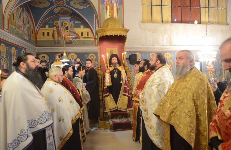 Αρχικά τελέσθηκε η ακολουθία του Εσπερινού, χοροστατούντος του Σεβασμιότατου Ποιμενάρχου μας, Μητροπολίτου Αιτωλίας και Ακαρνανίας κ. Δαμασκηνού, ο οποίος ευλόγησε την αρτοκλασία που προσέφερε ο Σύλλογος Ιεροψαλτών, ευχόμενος υπέρ υγείας αυτών και των οικογενειών τους. Επίσης ευλόγησε την βασιλόπιττα του Συλλόγου Ιεροψαλτών «Άνθιμος ο Αρχιδιάκονος» και μίλησε στους Ιεροψάλτες που συμμετείχαν στην ακολουθία.