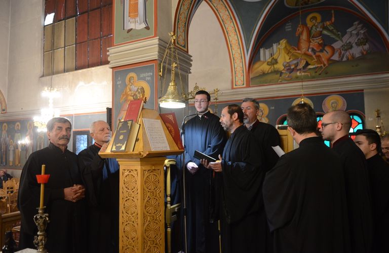 Τα αναλόγια πλαισίωσαν χοροί Ιεροψαλτών, υπό τη διεύθυνση του κ. Ανδρέα Φούκα και του κ. Νικολάου Παππά, οι οποίοι απέδωσαν εξαιρετικά τους ύμνους της ημέρας.