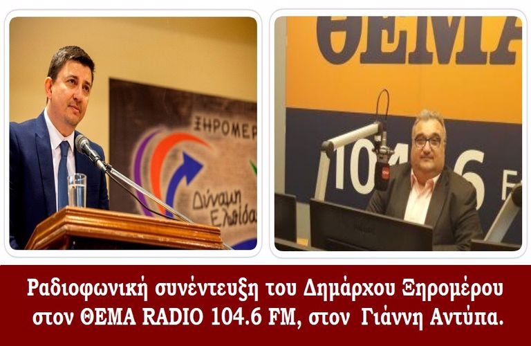 Ραδιοφωνική συνέντευξη έδωσε ο Δήμαρχος Ξηρομέρου Γιάννης Τριανταφυλλάκης, το Σάββατο 28 Νοεμβρίου, στο «ΘΕΜΑ Radio 104.6 FM», στην πρωινή εκπομπή «Σκοίλ Ελικίκου» με τον Γιάννη Αντύπα.