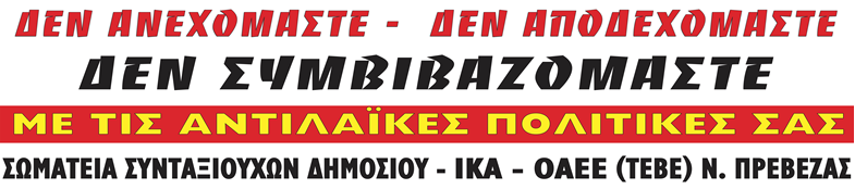 Τα Διοικητικά Συμβούλια των σωματείων Πρεβεζας: ΔΗΜΟΣΙΟΥ-ΙΚΑ-ΟΑΕΕ