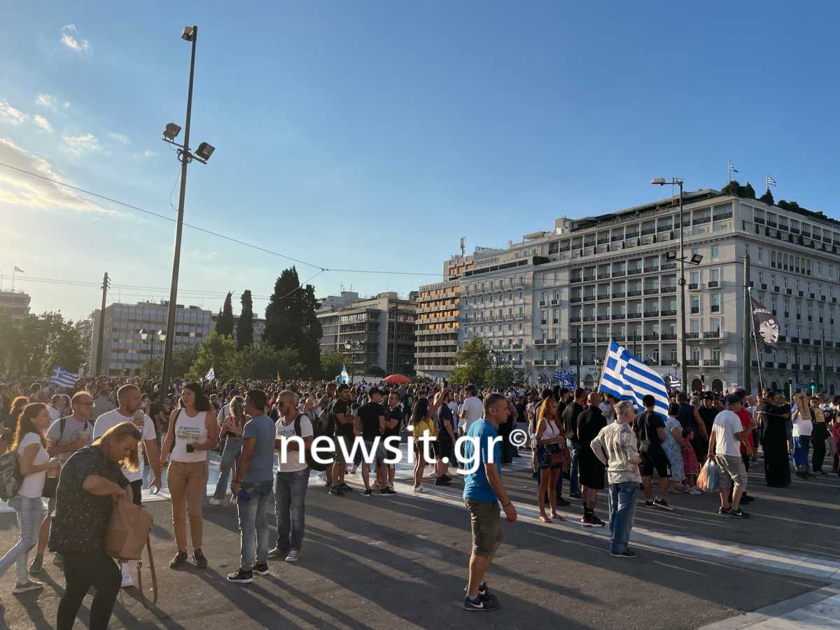 Σύνταγμα: Πλήθος διαδηλωτών στη συγκέντρωση κατά της υποχρεωτικότητας του εμβολιασμού