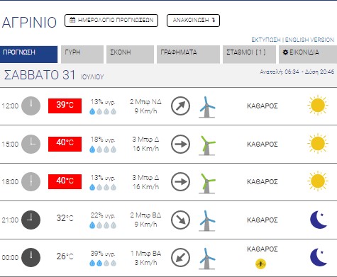 Συνθήκες καύσωνα με μέγιστες θερμοκρασίες στο Αγρίνιο