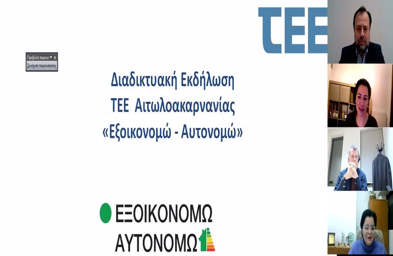 «Μία ξεχωριστή και ιδιαίτερα πρωτοποριακή εκδήλωση διοργάνωσε το Τ.Ε.Ε. Αιτωλοακαρνανίας την Παρασκευή 4/12/2020, με θέμα: «Εξοικονομώ – Αυτονομώ 2020».