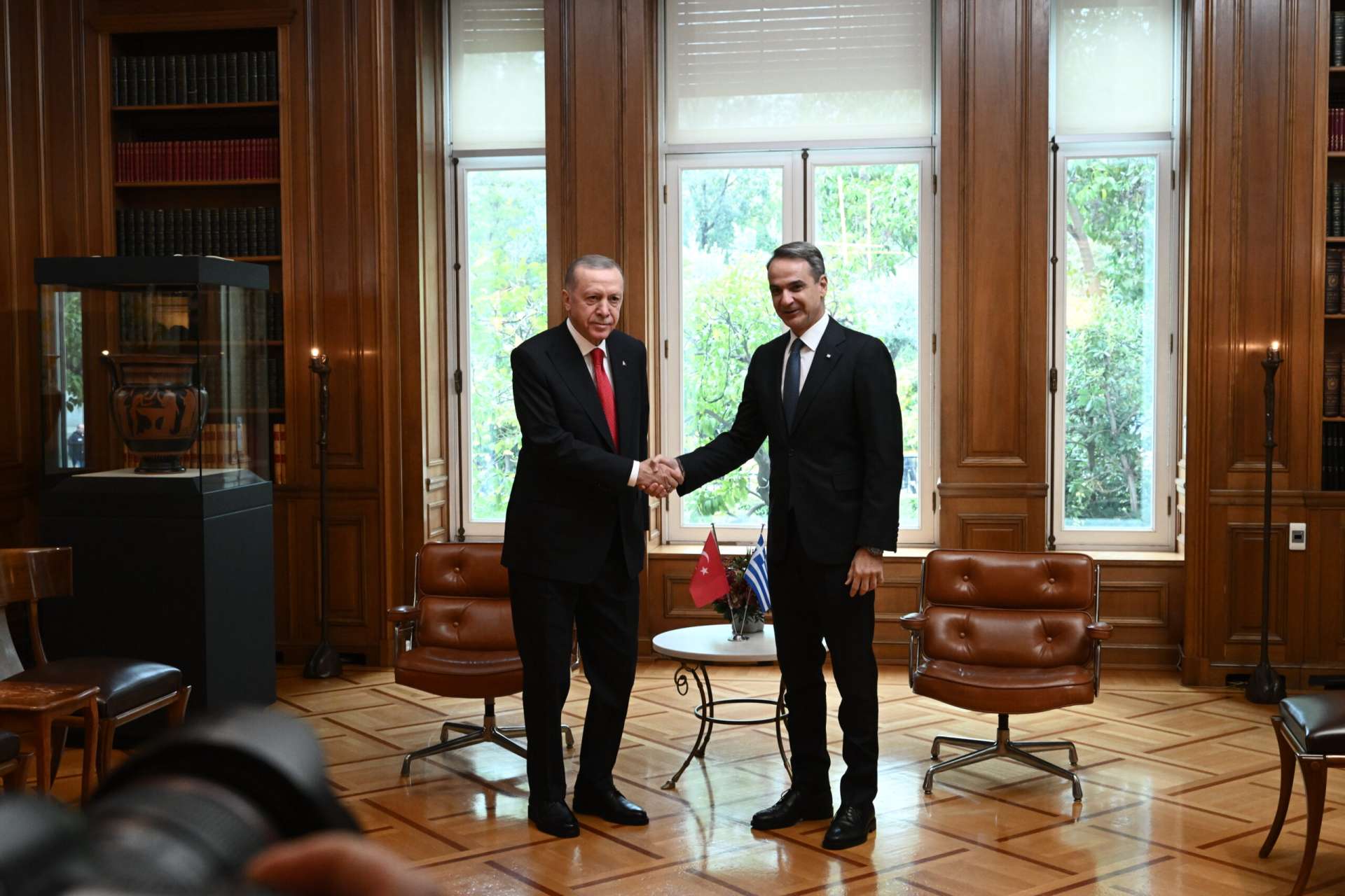 Κοινές δηλώσεις ποίησαν Κυριάκος Μητσοτάκης και Ρετζέπ Ταγίπ Ερντογάν μετά τη συνάντηση που είχαν στο Μέγαρο Μαξίμου παρουσία ολιγομελών αντιπροσωπειών από Έλληνες και Τούρκους υπουργούς. Δείτε...
