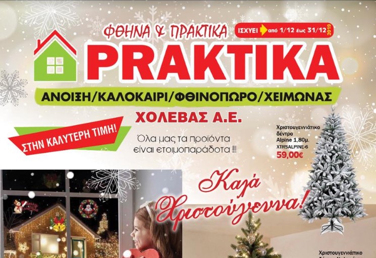 Με νέες προσφορές υποδεχόμαστε τον Μήνα Δεκέμβριο! Στο κατάστημα PRAKTIKA Χολέβας Α.Ε. θα βρείτε πάνω από 2.000 κωδικούς Χριστουγεννιάτικα, θα βρείτε είδη θέρμανσης καθώς και έπιπλα...