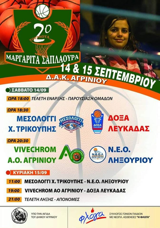 Το 2ο τουρνουά “Μαργαριτα Σαπλαούρα” διοργανώνει η ομάδα μας το Σαββατοκύριακο 14 και 15 Σεπτεμβρίου. Οι αγώνες θα γίνουν στο κλειστό του ΔΑΚ Αγρινίου οι ομάδες...