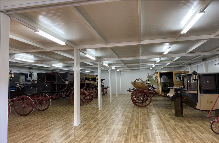 Από τον Στάβλο μεταφέρθηκαν και οι άμαξες της τ. βασιλικής οικογένειας, οι οποίες τοποθετήθηκαν σε νέο αποθηκευτικό χώρο σύγχρονων προδιαγραφών με συνθήκες αποθήκευσης ασφάλειας και προστασίας, ο οποίος κατασκευάστηκε με την χορηγία της ΑΜΚΕ Αιγέας, δίπλα στον χώρο που φυλάσσονται τα αυτοκίνητα της τ. βασιλικής οικογένειας.