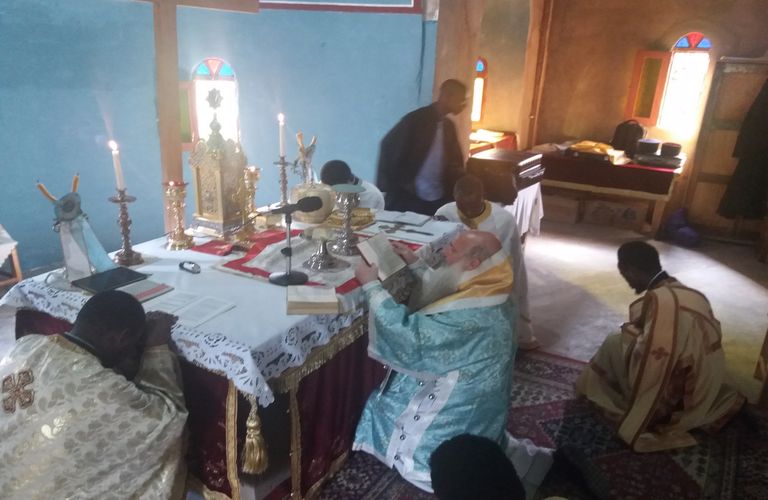 Την επόμενη ημέρα από τα θυρανοίξια Κυριακή Αγίας Μαρίας της Αιγυπτίας ο Μητροπολίτης Κανάγκας τέλεσε την πρώτη Θεία Λειτουργία.