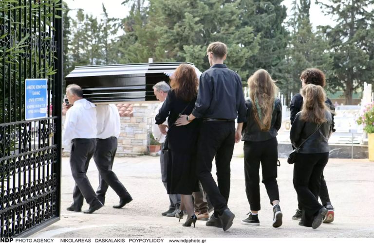Από τους πρώτους που βρέθηκαν στο Κοιμητήριο Παιανίας, ήταν τα παιδιά και η πρώτη σύζυγος του ηθοποιού, Δέσποινα Παπαθανασίου.