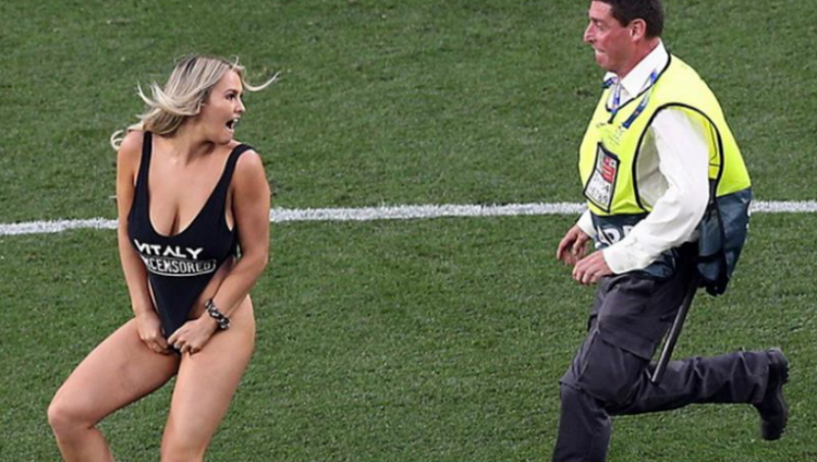 Η ξανθιά κοπέλα μπήκε φορώντας μόνο το αποκαλυπτικό μαγιό της, διακόπτοντας για λίγα δευτερόλεπτα τον αγώνα, μέχρι που οι άνδρες της ασφάλειας την έβαλαν έξω.