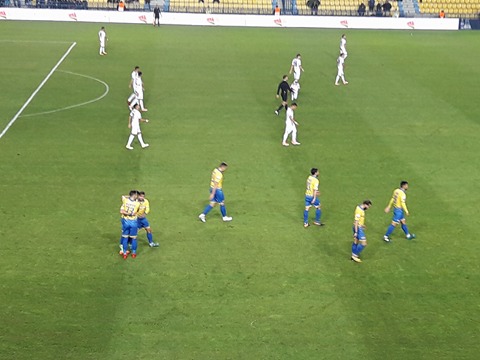 Μικρή διακοπή στο ματς. Ο σκόρερ του δεύτερου τέρματος των γηπεδούχων, βρίσκεται στο έδαφος