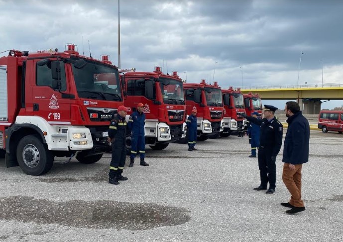 Συγκεκριμένα, την Τετάρτη παραλήφθηκαν τέσσερα υδροφόρα πυροσβεστικά οχήματα 10 τόνων, ενώ τις προηγούμενες ημέρες οι Πυροσβεστικές Υπηρεσίες ενισχύθηκαν με άλλα πέντε νέα υδροφόρα πυροσβεστικά οχήματα (4Χ4) 5 τόνων.