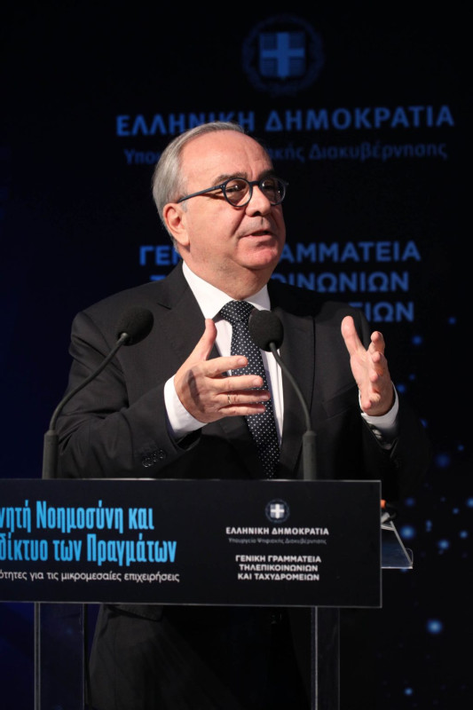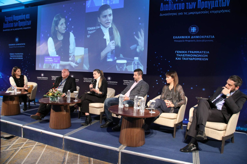 Με γόνιμο διάλογο και ενδιαφέρουσες παρεμβάσεις πραγματοποιήθηκε η Ημερίδα με θέμα «Τεχνητή Νοημοσύνη και Διαδίκτυο των Πραγμάτων: Δυνατότητες για τις μικρομεσαίες επιχειρήσεις» η οποία διοργανώθηκε από το Υπουργείο Ψηφιακής Διακυβέρνησης και τη Γενική Γραμματεία Τηλεπικοινωνιών & Ταχυδρομείων. Στην εκδήλωση συμμετείχαν εκπρόσωποι και στελέχη από Υπουργεία και φορείς του Δημοσίου, από θεσμικούς φορείς και εταιρείες.