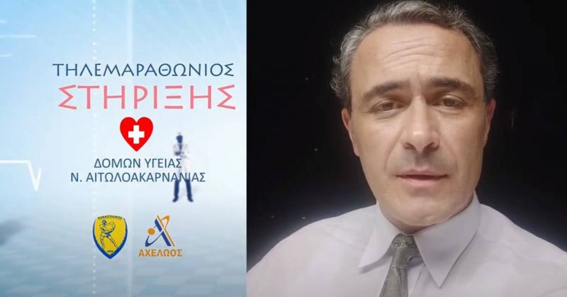 “Ας αποδείξουμε όλοι μαζί, ακόμη μια φορά τη δύναμη της αγάπης και της αλληλεγγύης” αναφέρει χαρακτηριστικά ο γνωστός ηθοποιός Θανάσης Κουρλαμπάς, προσκαλώντας τους πολίτες της Αιτωλοακαρνανίας να συμμετέχουν στον τηλεμαραθώνιο για την στήριξη και ενίσχυση των δομών Υγείας της Αιτωλοακαρνανίας σήμερα,Κυριακή.