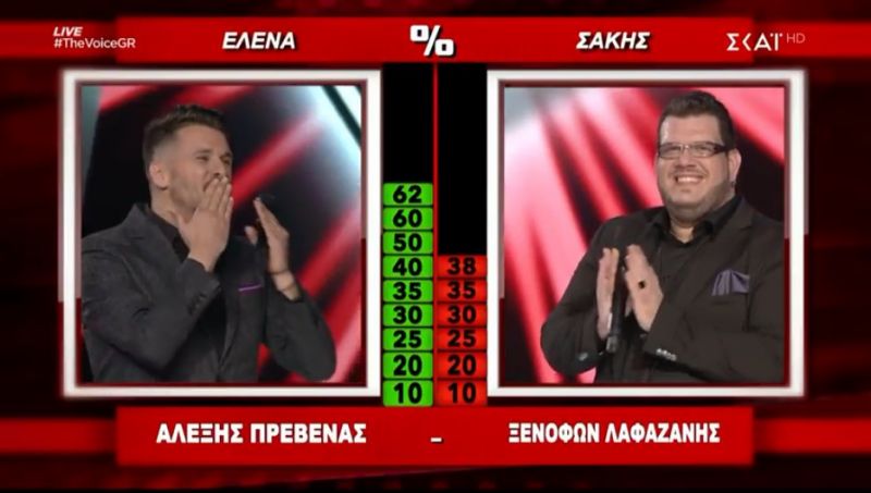 Από εδώ και πέρα μόνο το κοινό κρίνει την τύχη των παιχτών και για τον Αλέξη Πρεβενά με καταγωγή από την Αράχωβα της Ορεινής Ναυπακτίας αποφάσισε πως έχει να προσφέρει -τουλάχιστον- ως τον Ημιτελικό του φετινού show επικρατώντας του Ξενοφώντα Λαφαζάνη από την Θεσσαλονίκη με 62% έναντι 38% που συγκέντρωσε ο αντίπαλός του.
