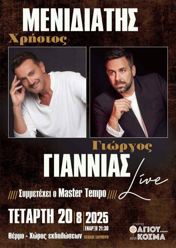 Το Θέρμο βάζει τα… καλά του στο πλαίσιο των Εορτών «Άγιος Κοσμάς ο Αιτωλός»! Απόψε Χρήστος Μενιδιάτης, Γιώργος Γιαννιάς και Master Tempo