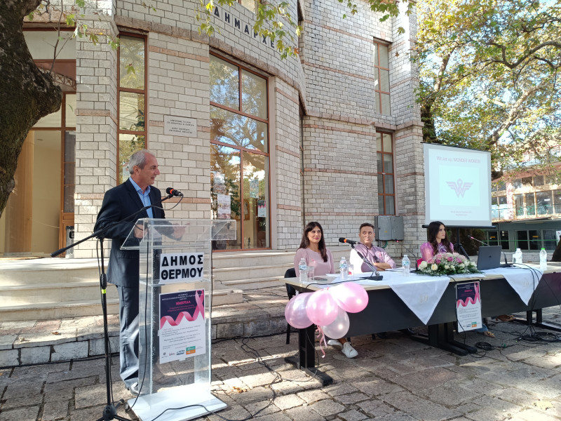 Ο Δήμος Θέρμου, οι Κοινωνικές Δομές του Δήμου και το Κέντρο Πολιτισμού, Αθλητισμού και Περιβάλλοντος διοργάνωσαν με μεγάλη επιτυχία σήμερα Παρασκευή 20 Οκτωβρίου 2023 ημερίδα ευαισθητοποίησης για τον καρκίνο του μαστού στον αύλειο χώρο του Δημαρχείου.