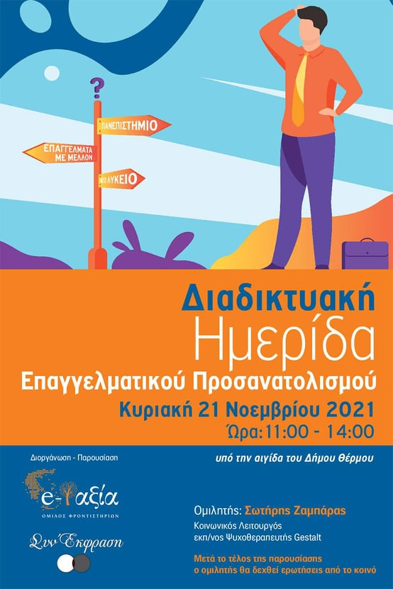 Γι’ αυτό, διοργανώνεται στο Θέρμο Διαδικτυακή Ημερίδα Επαγγελματικού Προσανατολισμού υπό την Αιγίδα του Δήμου Θέρμου, η οποία θα πραγματοποιηθεί την Κυριακή 21 Νοεμβρίου 2021 και από ώρα 11:00 έως 14:00.