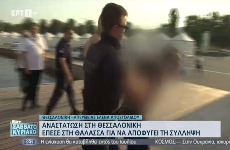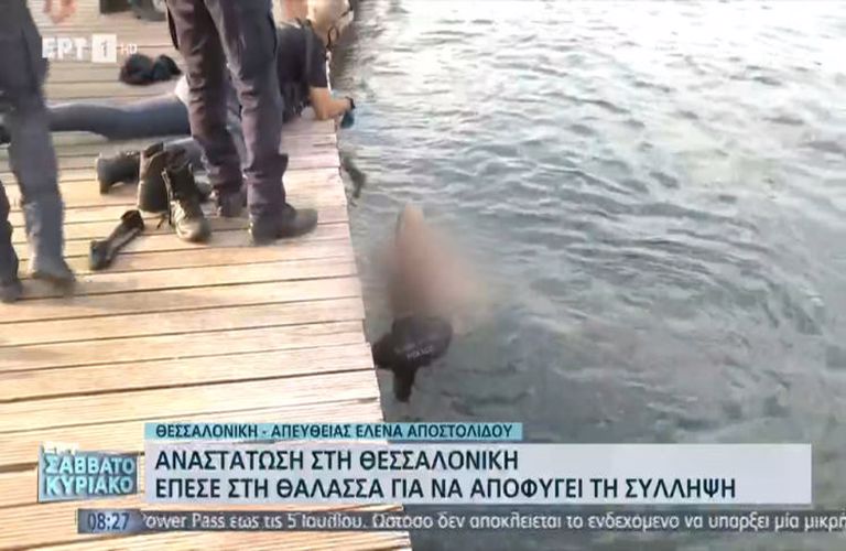 Οι Αστυνομικοί τον πλησίασαν και του ζήτησαν να τους ακολουθήσει αλλά εκείνος έπεσε στα νερά του Θερμαϊκού. Οι άνδρες βούτηξαν πέρασαν ένα σκοινί στα χέρια του και τον έβγαλαν έξω, με τον άνδρα να φωνάζει «αφήστε με να πεθάνω, δε θέλω να βγω».