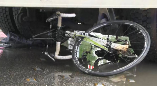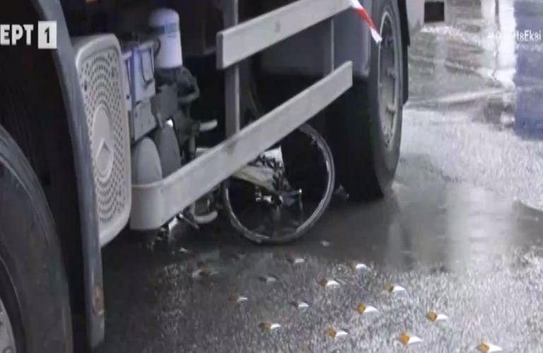 Σοκαριστικές είναι και οι εικόνες που κατέγραψαν οι κάμερες από το σημείο καθώς όπως φαίνεται το ποδήλατο έχει συνθλιβεί κάτω από τις ρόδες του φορτηγού.