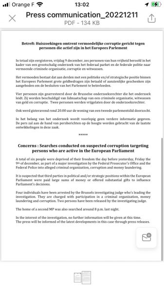 Στην δημοσιότητα βρίσκεται η ανακοίνωση των βελγικών αρχών. Οι συλληφθέντες κατηγορούνται για εγκληματική οργάνωση, ξέπλυμα χρήματος και διαφθορά.