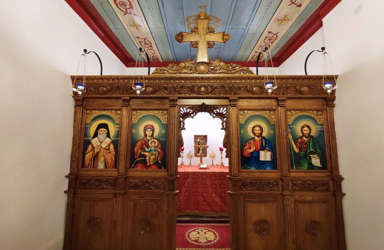 Ο Σεβασμιώτατος ράντισε με τον αγιασμό όλους του χώρους του Παρεκκλησίου, την Αγία Τράπεζα, τις Εικόνες, τα Σκεύη και στην συνέχεια έπλυνε την Αγία Τράπεζα με ροδόσταγμα, την ενέδυσε με τα καλύμματα και τοποθέτησε το ιερό Ευαγγέλιο και τα ιερά Σκεύη.