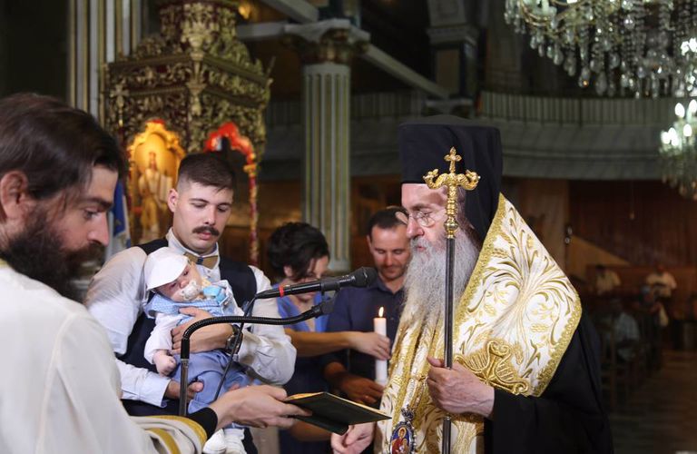 Αμέσως μετά ο Μητροπολίτης Ναυπάκτου κ. Ιερόθεος τέλεσε το μυστήριο του Βαπτίσματος του υιού του ζεύγους Αποστόλου και Μαρίας Ζαρκαδούλα, ενοριτών του Ιερού Ναού Αγίου Αθανασίου. Στο νεοφώτιστο έδωσαν το όνομα του αγίου Καλλινίκου. Ανάδοχοι ήταν τα παιδιά του π. Οδυσσέα, Μαρία και Χρήστος Κυρόσιμος.