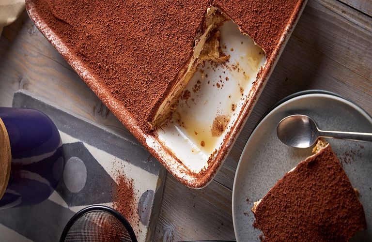 - Πασπαλίζουμε την επιφάνεια του τιραμισού με κοσκινισμένο κακάο και αφήνουμε στο ψυγείο για 6 ώρες.