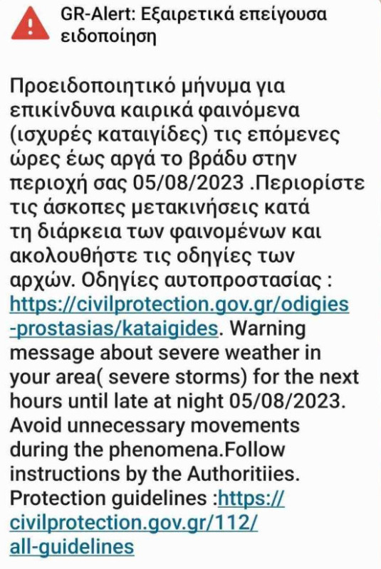 Δεν ήταν λίγοι εκείνοι που έλαβαν από το πρωί του Σαββάτου, 5 Αυγούστου 2023 προειδοποιητικό μήνυμα από το 112 για την κακοκαιρία «Petar» η οποία αναμένοταν να εκδηλωθεί από τις μεσημεριανές ώρες.