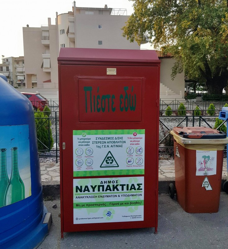 Ο Σύνδεσμος Διαχείρισης Στερεών Αποβλήτων 1ης Γεωγραφικής Ενότητας Ν.Αιτωλοακαρνανίας, σε συνεργασία με τον Δήμο Ναυπακτίας και την εταιρεία Recycom, προχωρά στην πιλοτική έναρξη της δράσης «Κόκκινοι Κάδοι» στοχεύοντας στην ανακύκλωση μεταχειρισμένων ειδών ένδυσης και υπόδησης.