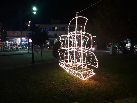 Σήμερα νωρίς το πρωί τοποθετήθηκε και το απόγευμα φωταγωγήθηκε και το δεύτερο Χριστουγεννιάτικο καράβι στο «Πλατανάκι» στην περιοχή της Αγίας Βαρβάρας, ενώ τη περασμένη Παρασκευή είχε προηγηθεί η ίδια διαδικασία στον κόμβο του Αγίου Δημητρίου.