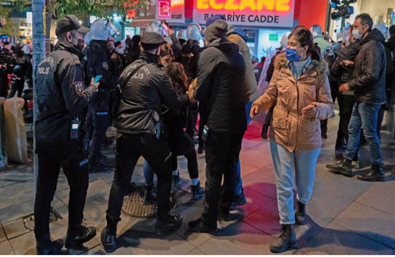 Η διαδήλωση που πραγματοποιήθηκε στην συνοικία Καντίκιοϊ, στην ασιατική πλευρά της Κωνσταντινούπολης, δέχτηκε την επίθεση της αστυνομίας, όπου πολλοί διαδηλωτές ξυλοκοπήθηκαν ή συνελήφθησαν. Δημοσιογράφοι και φωτορεπόρτερ επίσης εμποδίστηκαν επίσης από άνδρες της αστυνομίας. Στο Σισλί επίσης, συνελήφθησαν διαδηλωτές, που φώναζαν συνθήματα κατά της κυβέρνησης.