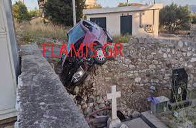Το ΙΧ το οποίο οδηγούσε ο νεαρός, εξετράπη της πορείας του και έπεσε πάνω σε μάντρα νεκροταφείου