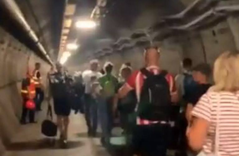 Οι ταξιδιώτες μοιράστηκαν την εμπειρία τους στα social media, με βίντεο που δείχνουν ανθρώπους να περπατούν μέσα από τη σήραγγα διαφυγής κατά μήκος της σιδηροδρομικής υποθαλάσσιας διαδρομής μήκους 31 μιλίων (50 χλμ) μεταξύ Βρετανίας και Γαλλίας.