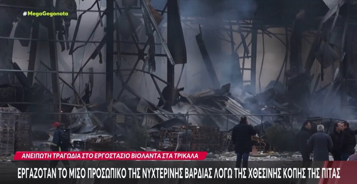 Τραγωδία στα Τρίκαλα και το εργοστάσιο «Βιολάντα» με ντοκουμέντο από τη στιγμή της έκρηξης στο Κεντρικό Δελτίο Ειδήσεων του Mega Channel, 5 νεκρές εργαζόμενες.